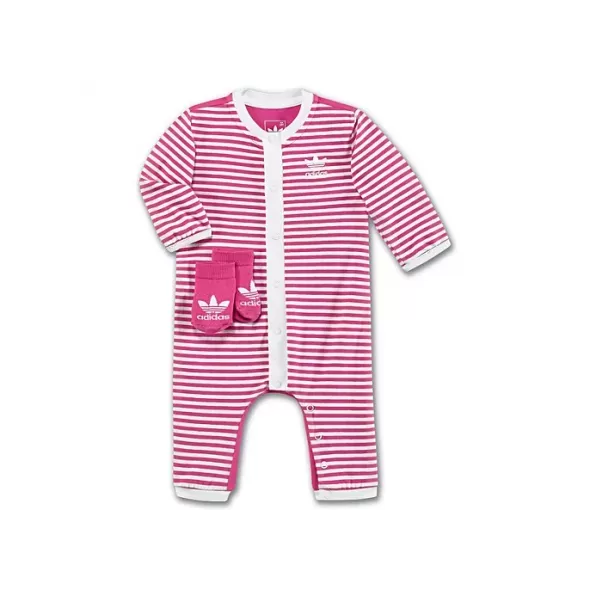 Welcome the new addition with this adidas Originals Gift Set, featuring a one-piece romper and matching socks. The romper has a sleepy-time Trefoil character on the back, while the front bristles with fun in vibrant stripes.