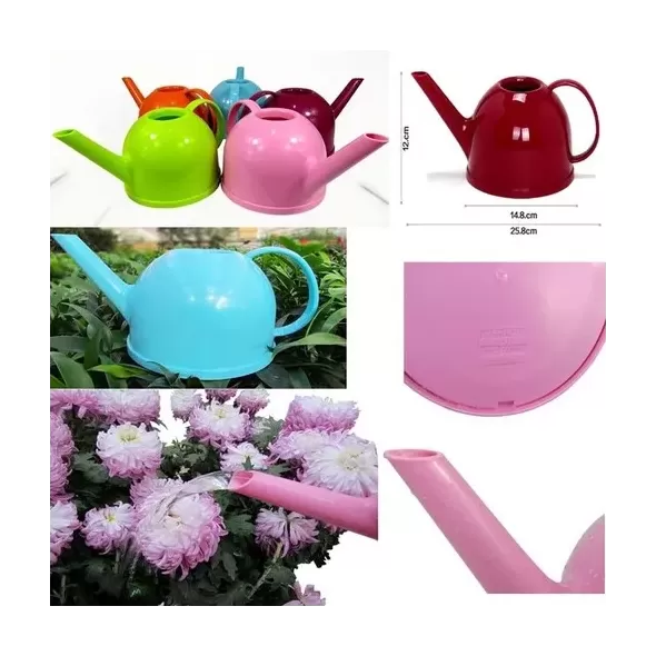 These watering cans are ideal for indoor or outdoor watering, you can water flowers, wash car, wash window and clean house with them. Nice shape and good design made them more useful. Product approximate size:Capacity: 1.2L. Meterial:resin It is a reaaly good product for people who like planting flowers, and it is also a good partner for doing some cleaning. Easy to use. Just put water into them. And some style with long spout and shower, they must can meet your require. Multi-functional, such as washing windows, cleaning cars,watering flowers and so on.