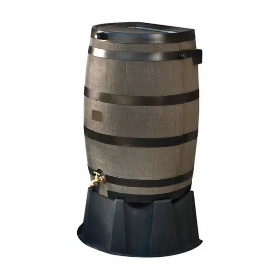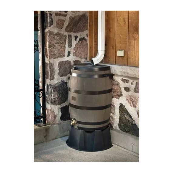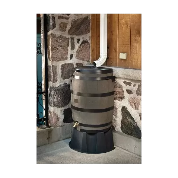 This 50 Gallon Plastic Water Barrel is designed to collect and storage rain water for future use. Save on your water bill while saving the environment by using what nature gives you. Set this rain barrel underneath your downspout to collect water when it rains. The included screen keeps out debris such as leaves and twigs, and it prevents the water from becoming a breeding ground for bugs. The strong resin plastic is fade, rot, and even termite resistant so it will last for years. The oak barrel texture makes it look real, and it comes in several colors to complement any backyard space. Use the attached spigot at the bottom of the rain barrel to collect water as needed. You can even attach a garden hose to the spigot for added convenience. 50 Gallon Resin Water Barrel Features Allows you to collect and then store rain water. Helps you water outdoor plants and flowers. Eliminates the need to use water from the tap. Constructed from long-lasting resin plastic. Plastic is fade, rot, and even termite resistant. Available in several colors. Oak barrel texture looks real. Huge 50 gallon storage capacity. Incredibly environmentally friendly. Economical as it saves on your water bill. Completely pet and child proof. Flat back rests flush against the house. Sold individually. Connect multiple rain barrels together. Set below a downspout to catch water. Includes a screen to keep out debris. Screen keeps out leaves, twigs, and bugs. Includes a spigot. Spigot is attached at the bottom. Turn spigot on and off as desired. Attach a garden hose to spigot as needed. Product ID 40768412