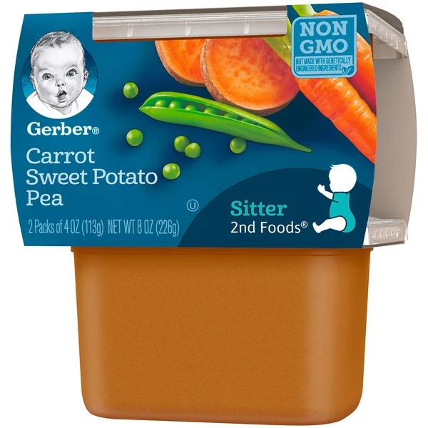 Details Ingredients Carrots, Water, Sweet Potatoes, Peas, Vitamin C. Product features Continue your baby's love for fruits and vegetables with Gerber 2nd Foods. Gerber 2nd Foods help expose babies to a variety of tastes and ingredient combinations which is important to help them accept new flavors. Gerber 2nd Foods are made with fruits and vegetables that meet Gerber's high quality standards and have the perfect texture for your little one. Gerber 2nd Foods are unsweetened, unsalted, have no added starch and no artificial flavors or colors. Gerber 2nd Foods Mixed Vegetables, 4 Ounce Tubs - Pack of 2 Made with natural vegetable- Ingredients carefully selected to meet Gerber high quality standards Unsweetened, unsalted, no added starch, no artificial flavors or colors Age appropriate texture and nutrition that has an excellent source of Vitamin A Gerber is a leader in infant and early childhood nutrition. Have questions? We are awake when you are 24/7: 1-800-284-9488 Special Features Natural Net Quantity of Content 2.0 X 1 Tub