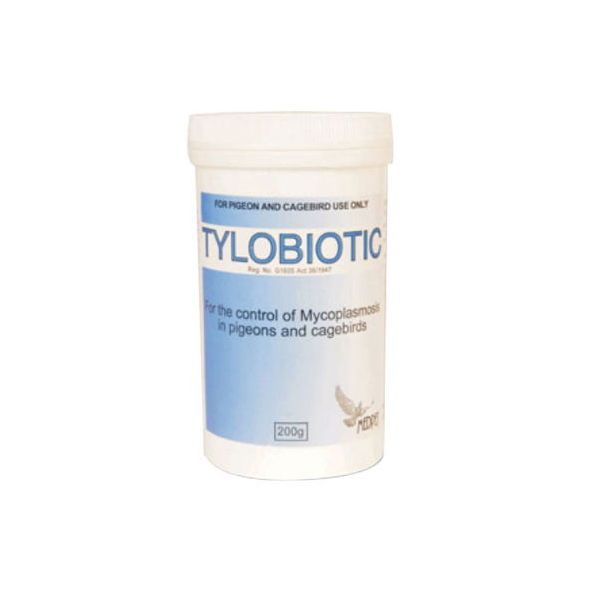 Tylobiotic is specially formulated for use in pigeons. It contains major ingredients - Tylosine Nicotinamide, Calcium pantothenate along with numerous vitamins. The antibiotic effect of tylosine removes bacterial infection and treats Mycoplasmosis in both racing pigeons and cage birds. It is uniquely formulated so that the danger of overdosing with Tylocin is minimized. Moreover, the combination with added vitamins helps to counteract the stress that is build up during the racing season. The clinically proven treatment is specifically designed for use in pigeons and racing birds.