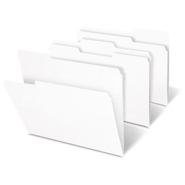 File Folders, 1/3 Cut, Letter Size, White, Box Of 100 Folders