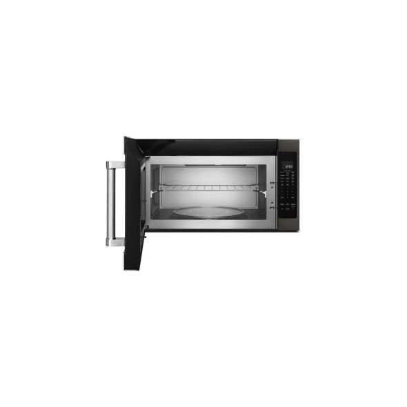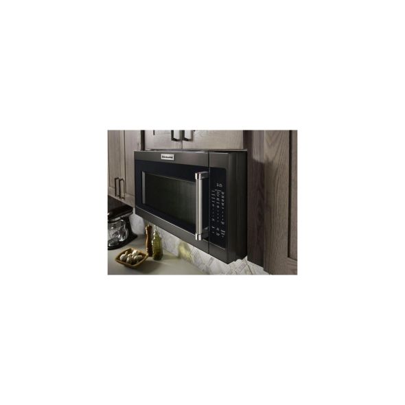 Reheat dishes or defrost main ingredients quickly with this KitchenAid over-the-range microwave. The turntable rotates smoothly for even cooking, and it has 16 settings for one-touch cooking of family favorites such as popcorn and baked potatoes. This KitchenAid over-the-range microwave has a three-speed fan to eliminate excess heat and cooking odors.