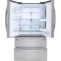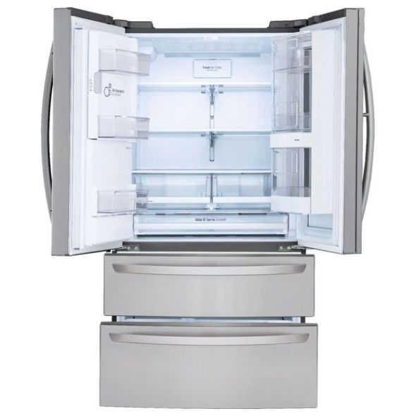 Search for food more efficiently with this LG French door refrigerator. The InstaView feature lets you see food through a glass window to reduce energy waste, and it has 28.0 cu. ft. of storage, so you have plenty of space. This LG French door refrigerator has a freezer with drawers for tidy food organization.